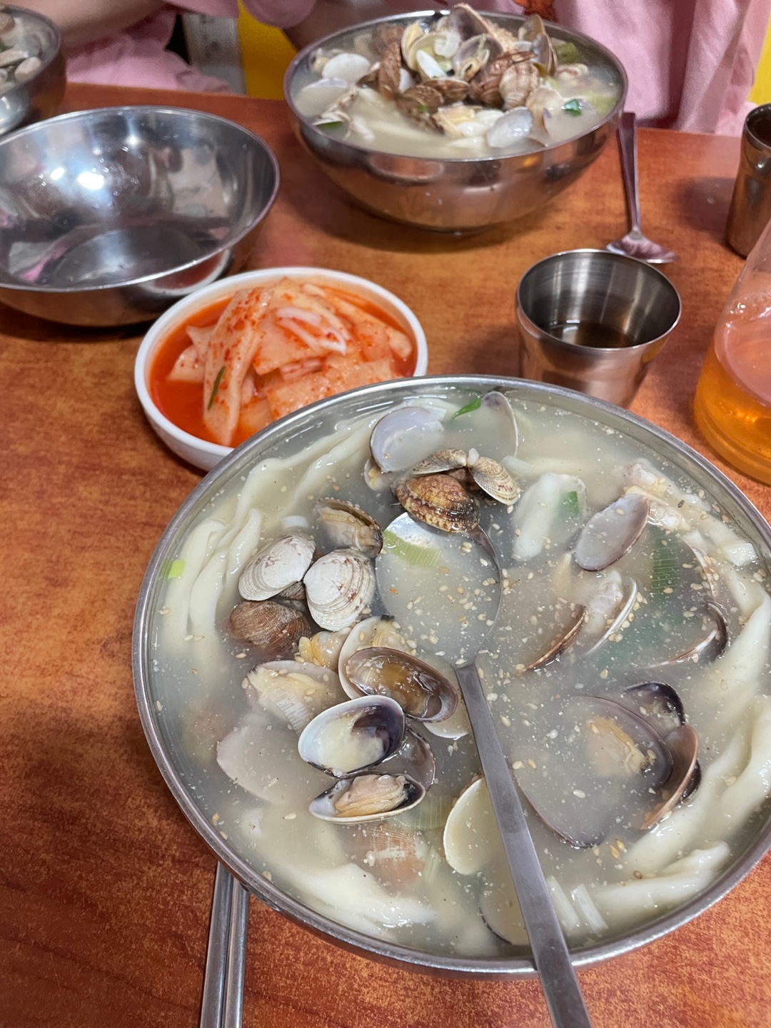 바지락이 먹어도먹어도 안줄어요. 여름에는 무김치만 하는데 새콤달콤한 맛이에요. 첨에는 일반김치맛이 아니네 했는데 칼국수와 조합이 괜찮아서 계속 먹게되요.